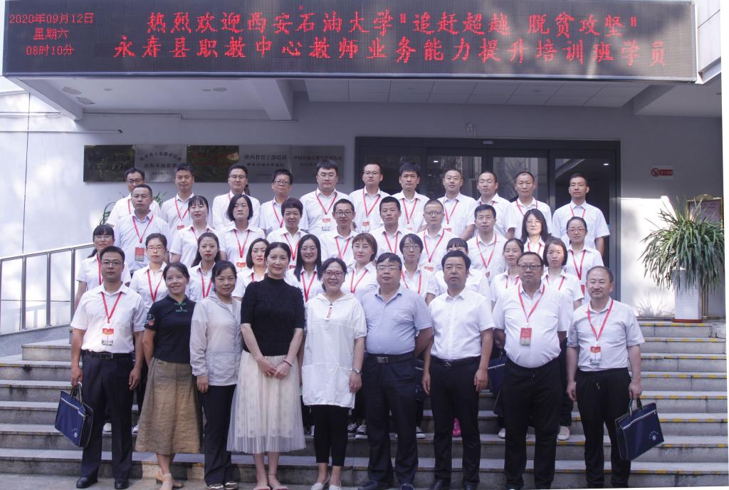 - - 9月12—13日,永壽縣職教中心教師業務能力提升培訓班在西安石油大學培訓中心開班,永壽縣職教中心35名老師參加了這次培訓。這是校工會依據省高教工委 “雙百工程”,在2020年助力永壽脫貧攻堅,實施教育幫扶工程的一項重要舉措。校工會主席袁玎、副主席朱瑋、永壽縣人民政府教育督導室副主任黃健身出席開班儀式,開班儀式由朱瑋主持。