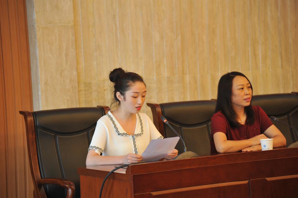 2018級的苗雨同學代表高年級翻譯碩士研究生發言,她分享了自己研究生生活的三點經驗和建議,思想上要堅定理想信念,學習上要練就過硬本領,生活上要做好規劃、敢于拼搏。希望同學們力學篤行、兼功自厲,也祝愿大家都能如校歌中所寫:山高水長,一路壯歌,看我輝煌明天!