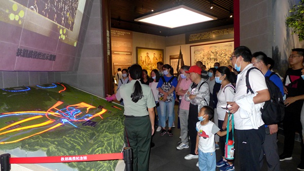 通過豐富真實的戰役歷史資料和講解員的系統介紹,配合聲、光、電等高科技,大家的腦海中似乎又重現了人民解放軍英勇戰斗的場面,尤其是紀念館陳列的戰旗、錦旗、獎章以及繳獲敵人的部分武器和報話器材等遺物,如二兵團四軍十師師長劉懋功、31團團長王學禮、營長馬成林用過的望遠鏡,戰斗英雄李珍吹過的軍號,于建軍烈士曾經用過的硯臺,張遵吉烈士的家書,武德彪等烈士用過的圖章,戰斗英雄張福來、李錫貴的立功證書和用過的軍毯、穿過的軍鞋等,讓大家更加深刻地體會到了革命戰爭年代解放軍戰士的英雄氣概和革命擔當,體會到了黨的戰略方針的英明、革命戰爭年代的艱辛和今天大好局面與幸福生活的來之不易。