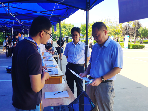 9月6日至7日,學院黨委書記齊仲鋒、副院長宋海洋在報到當天前往迎新現場檢查指導工作。齊書記與宋院長重點了解了新生報到流程及同學們的報到情況,要求接待工作組以高度的責任心與積極的工作態度做好迎新工作,為同學們提供熱情周到的服務。