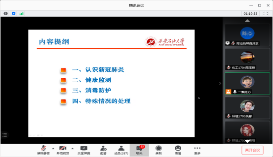 8月22至23日,學院“復學第一課”教育大會依托“騰訊會議”分年級在線上召開,各年級輔導員主持,學院黨政領導、系主任、班主任、專業骨干教師等30余人次應邀參會指導,全院近1100名本科生按時參會。按照學院統一的教育方案,結合各年級不同學習特點,“復學第一課”從疫情防控、請銷假制度執行、學生公寓管理、晨午檢制度落實、穩定安全排查等方面開展了專題教育,就考風考紀、學業警示、返校復課要求、思想動態調查等作講解和要求;30余名教師從疫情防控入手,就開學課業銜接、上課準備要求、四六級備考及考研復習等作了宣講動員。