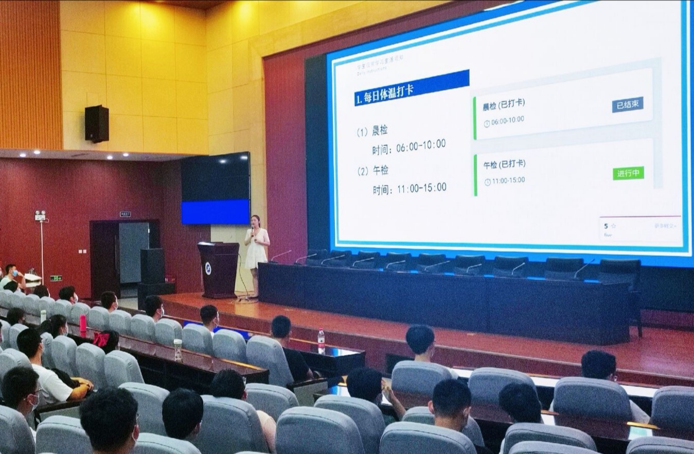 本次大會從嚴格健康監測管理、嚴格校園出入管理和大學的意義三方面展開。其中嚴格健康監測管理要求學生按時準確完成每天晨、午檢打卡,如遇同學有發熱癥狀應第一時間聯系輔導員老師并及時就醫;嚴格校園出入管理要求學生確因特殊原因需要外出的,須在“我在校園”管理平臺上提交相關證明材料辦理請假手續。大會后半部分圍繞大學對普通人的意義展開,沈軒羽老師告誡同學們,大學是人生的跳板,要想順利步入廣闊天地,就得好好利用大學這四年,并在日常的學習與生活中為自己確立明確目標,要學會時間管理,做自己的時間管理大師。假期線上自由的學習時光已經過去,沈老師希望同學們能夠反思過去,展望未來,端正姿態來迎接余下的大學生活,在多年后回顧大學生活時,不悔當初。
