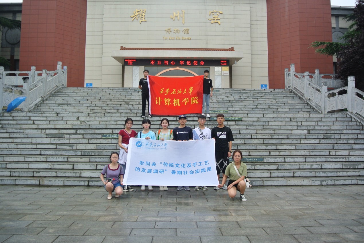 為了引導青年了解傳統文化,根據校團委統一部署,8月1日至8月4日,西安石油大學計算機學院赴同關“傳統文化及手工藝的發展調研”暑期社會實踐團隊由指導教師王天航帶領下,前往銅川開展了為期四天的社會實踐活動。