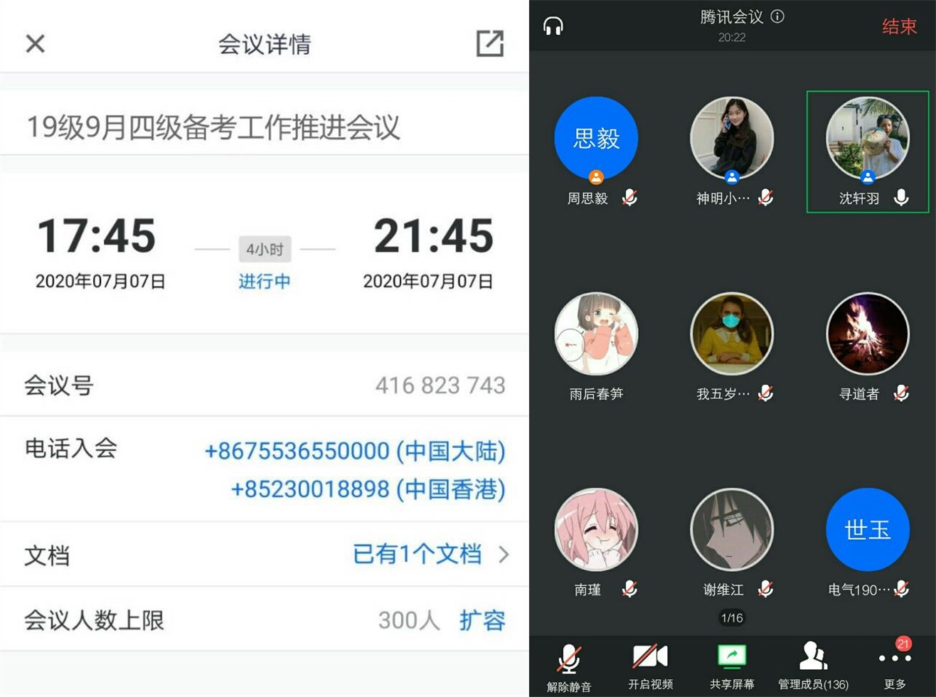 為做好我院四六級備考工作,提升我院19級四六級通過率,7月7日18:00電子工程學院19級輔導員沈軒羽老師通過騰訊會議APP主持線上19級9月四級備考工作推進會,會議就已開展為期一個多月的四六級備考工作進行交流和總結。