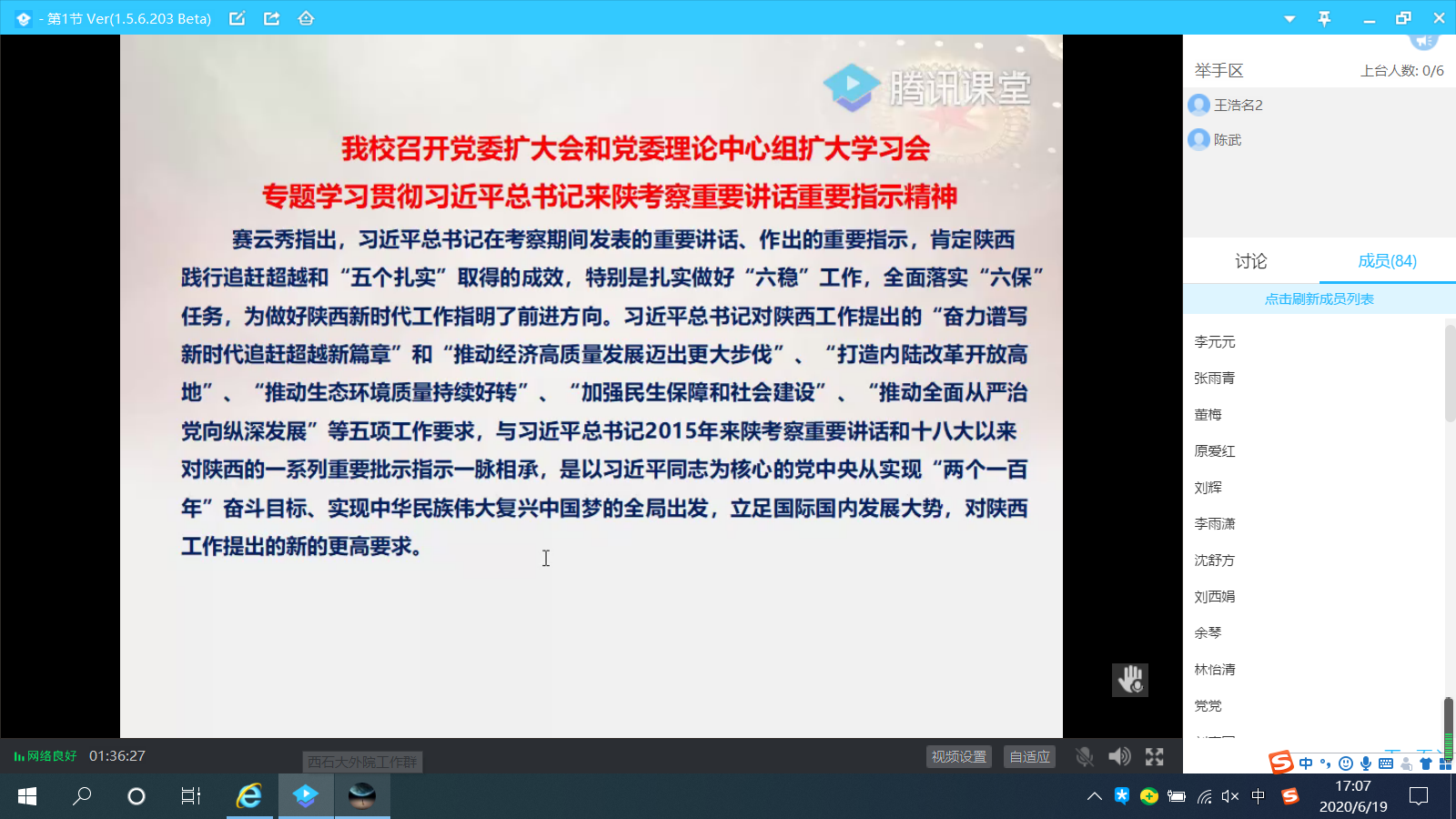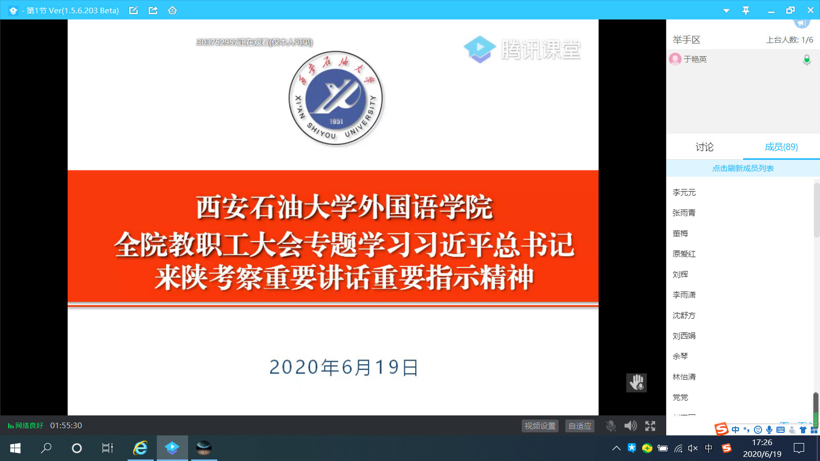 6月19日下午,外國語學院通過騰訊課堂的方式召開全院教職工大會,專題學習習近平總書記來陜考察重要講話精神。全院教職工參加會議,會議由學院黨委書記蔡強主持。