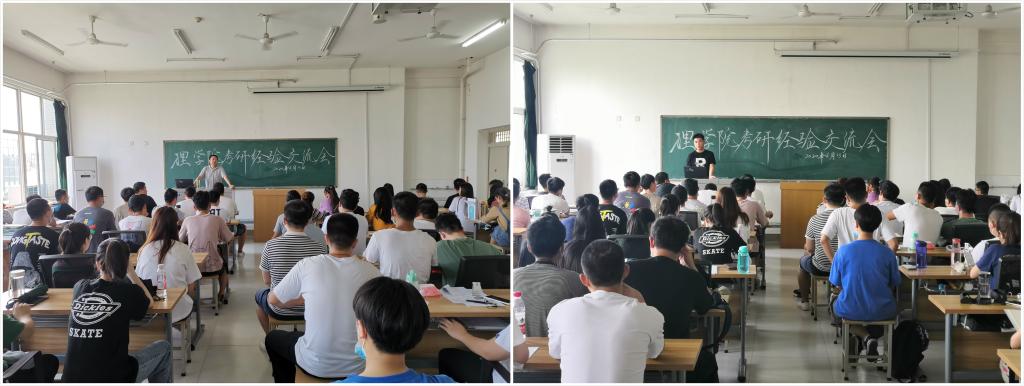 隨后,六名考研成功的同學先后作了經驗交流。魏旭龍同學順利考入西安電子科技大學,他從自己的院校選擇,參加報考院?!笆钇谙牧顮I”情況,專業課復習,心態調整,時間安排,個人心得等六個方面開展交流;陳聰同學今年考入我校計算機學院,他從院校選擇方面入手,分析專碩和學術的復習側重點,講述自己考研全過程;楊鵬熙同學順利考入西南交通大學,他分享自己專業選擇,本科期間成果積累等經驗;蒲莎莎同學介紹自己調劑回我校理學院的調劑過程,在專業選擇方面給全體同學建議;緱璠同學分享自己考入西安建筑科技大學的寶貴經驗;閻正華同學分享自己考入長安大學的點滴心得。