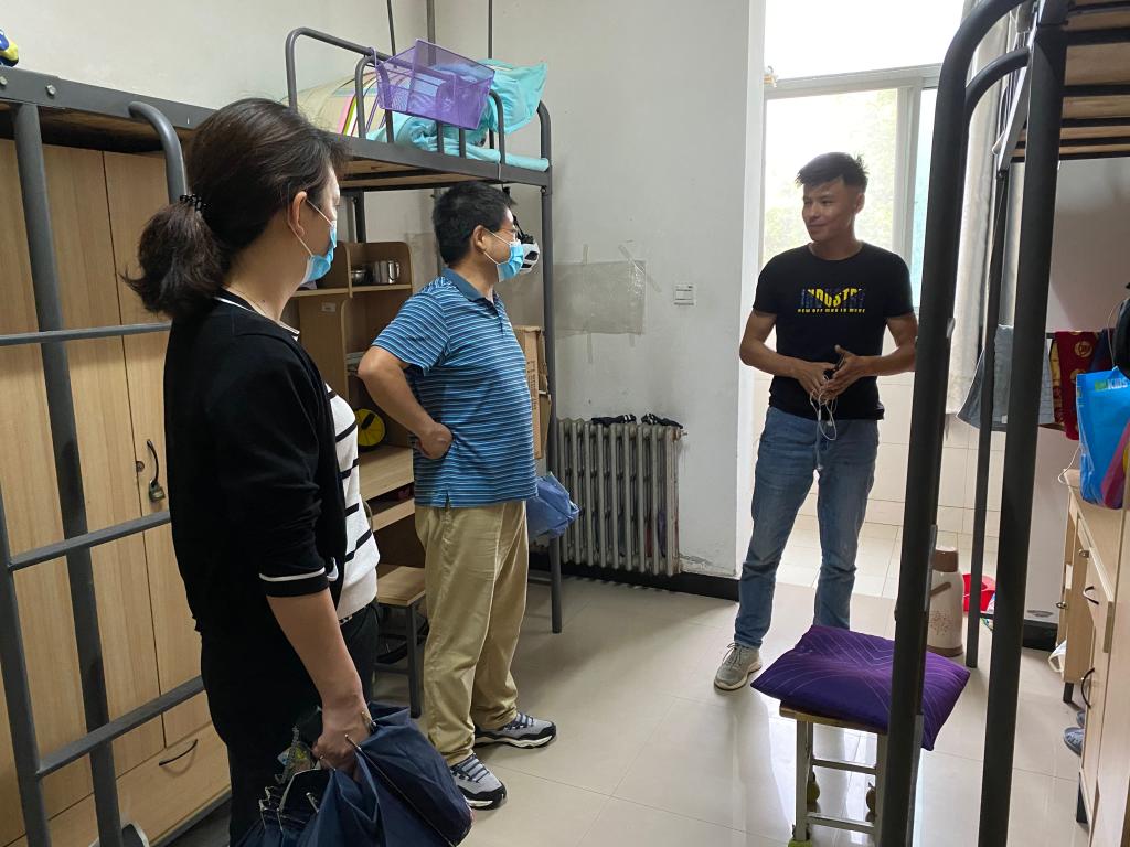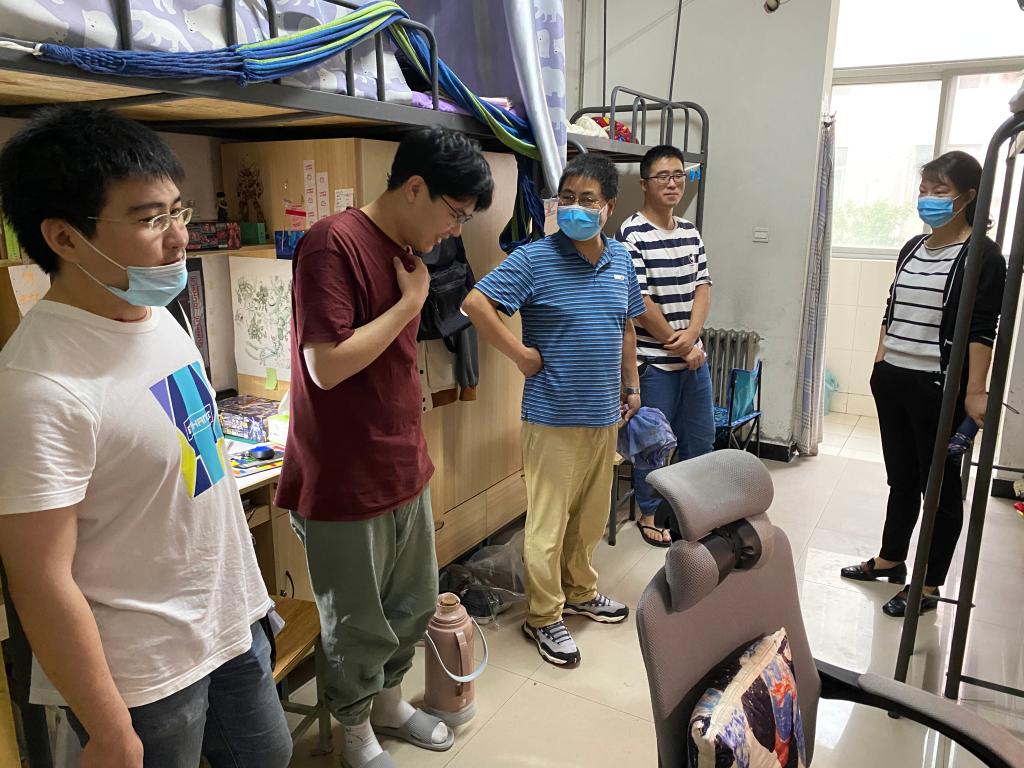 走訪中,余書記向學生詳細了解了宿舍衛生安全狀況以及個人防護物品發放的情況,叮囑他們特殊時期要做到勤通風、勤洗手、戴口罩。盛書記希望同學們保持樂觀積極的心態和科學健康的生活方式,配合做好每日健康申報工作。學生們表示,理解學校在非常時期采取的封閉管理措施,將在日常生活中保持宿舍衛生及通風,不給疫情防控工作增加壓力。