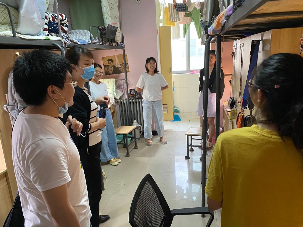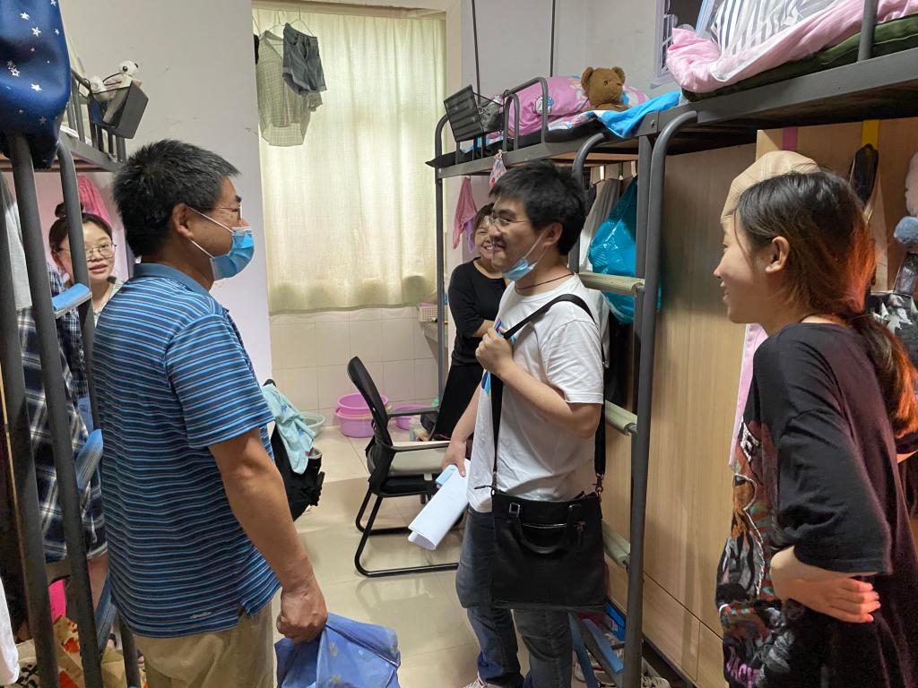 隨著學生返校工作的持續推進,返校學生的學習、生活和就業狀況牽動著學院老師的心。6月8日上午,人文學院黨委書記余小勇、黨委副書記盛丹帶領學院各年級輔導員深入宿舍,走訪慰問了返校學生。