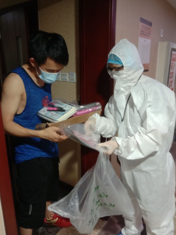 隨著我校學生陸續返校,第一批隔離學生已經入住明德校區,為幫助他們平穩、安康、充實地度過隔離期,6月4日下午,學生心理成長指導中心主任肖瓊、綜合辦公室主任焦文潔、校醫院姚剛大夫去住宿地看望隔離學生,帶去為他們量身定做的“獨處時光·有愛相伴六件套”,從緩解壓力、釋放情緒、鍛煉專注力、培養自律、培育希望等方面助力學生順利度過隔離時光。