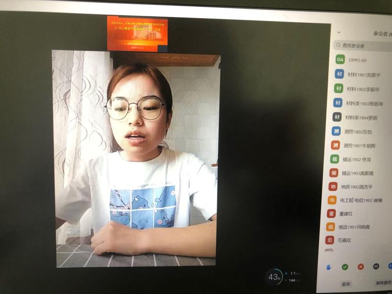 七名來自不同院系的心理委員首先發言。商務1801的黃蕾、化工1904的胡佩瑤、儲運1902的佟澤、測控1802的東怡、會計1601的陳文娜、能化1901的雷帥兵、數學1801的鮑喬分別分享了自己應對疫情以及發揮心理委員作用,與班級同學共同抗疫的經驗,比如班干部提醒同學上網課打卡、成立學習小組督促學習、和父母相處時嘗試用筆書寫情緒、感到憤怒時先做呼吸放松練習、用恰當的方式與父母溝通,努力不去做“距離父母一米的陌生人”等等。同時,他們也提出了自己以及同學們的新困擾,諸如目前居家上網課學習的焦慮情緒、不知何時返校的不確定感、和父母近距離相處時的沖突、在缺乏他律的環境下如何自律、事務繁多情況下的時間管理等問題,期待得到老師們的指點。