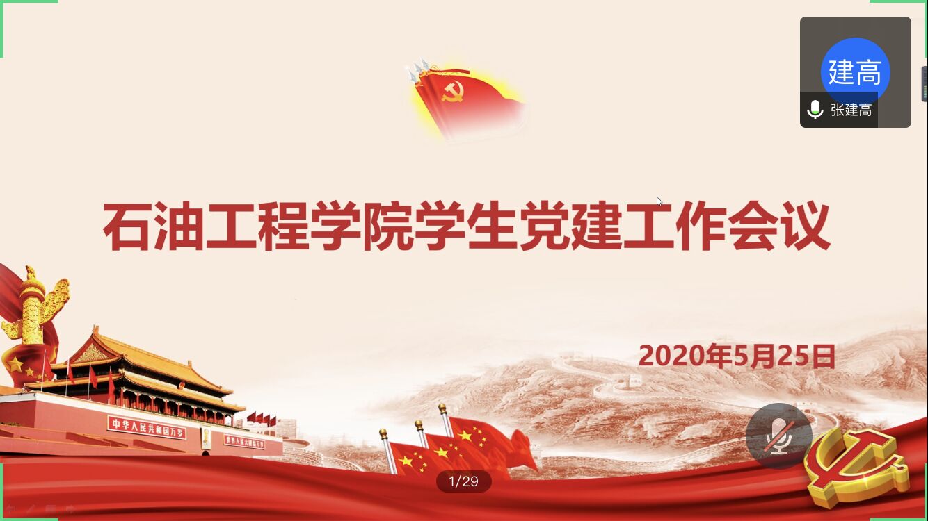5月25日中午,石油工程學院線上召開了學生黨建工作會議。學院黨委副書記張建高、學生管理辦公室主任朱戰威、黨委專職組織員劉曉陽、各學生黨支部支委、學生黨建辦公室全體成員參加了本次會議。