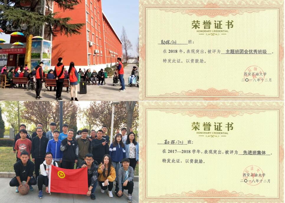 勘探1703團支部落實支部各項任務,以提升組織生活質量為抓手,將學風建設、志愿服務、社會實踐、雙創活動等融入到日常的組織生活中去,精心設計形式多樣,嚴肅活潑的“三會兩制一課”活動內容。支部成立以來獲得集體榮譽3次,支部成員獲得校級以上各類榮譽110人次。