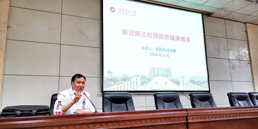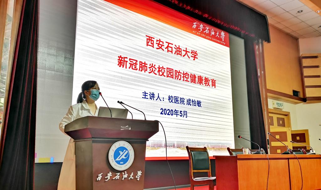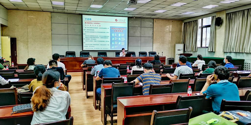 學校根據上級部門關于2020年春季學期學生返校有關要求,結合學校疫情防控工作實際,定于2020年5月7日起安排學生分期分批、錯峰有序返校。為了做好開學準備和開學后校園疫情防控工作,保障師生安全。2020年5月6日~7日,針對首批返校學生為2020屆碩士研究生和2019級博士生,校醫院副主任醫師、住院部主任成怡敏在雁塔校區學術報告廳為研究生輔導員和學工部干部開展“新冠肺炎疫情防控知識培訓”系列講座活動。這次活動由校醫院崔廣志院長主持,他強調了開學前后的具體注意事項。校醫院部分醫務人員、研究生輔導員和學工部領導干部共計80余人聆聽了講座。