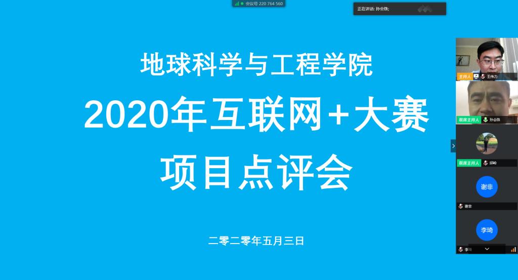 2020年5月3日,地球科學與工程學院在線召開了2020年“互聯網+”項目點評會。本次會議旨在了解學院所有項目總體狀況、明確各項目立項方向、規范策劃書書寫內容、設立下步工作目標。學院黨委副書記孫會珠老師、學管辦主任邱嶺老師參與評審,學院雙創聯絡人王偉力老師主持。