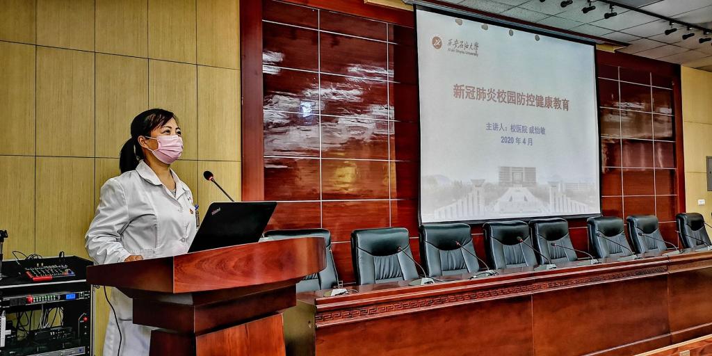 2020年4月19日,陜西省教育廳發布了“陜西省教育廳關于做好陜西高校2020年春季學期開學工作的通知(陜教明電〔2020〕3號)”。就全省高校2020年春季學期開學工作明確4月27日起,各高校可以開始安排學生錯時錯峰返校,具體返校時間由各高校統籌安排。為做好學生返校工作準備,校醫院立即嚴格執行教育廳及學校要求,認真做好組織統籌,不斷拓展健康教育方式,扎實開展開學前后新冠肺炎疫情防控宣傳教育各項工作。2020年4月24日,校醫院成怡敏副主任醫師在雁塔校區第五會議室為全體后勤人員進行了題為《新冠肺炎校園防控健康教育》健康講座活動。