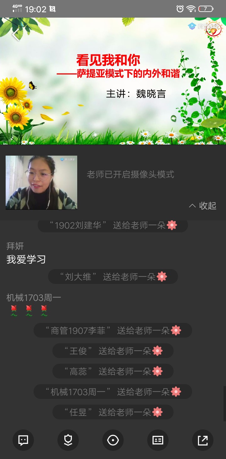 為進一步加強疫情期間師生的心理健康教育,4月23日晚,我校學生心理成長指導中心教師魏曉言老師在騰訊課堂進行了《看見我和你-薩提亞模式下的內外和諧》專題講座,我校部分師生、全校心理委員近700人在線觀看學習。