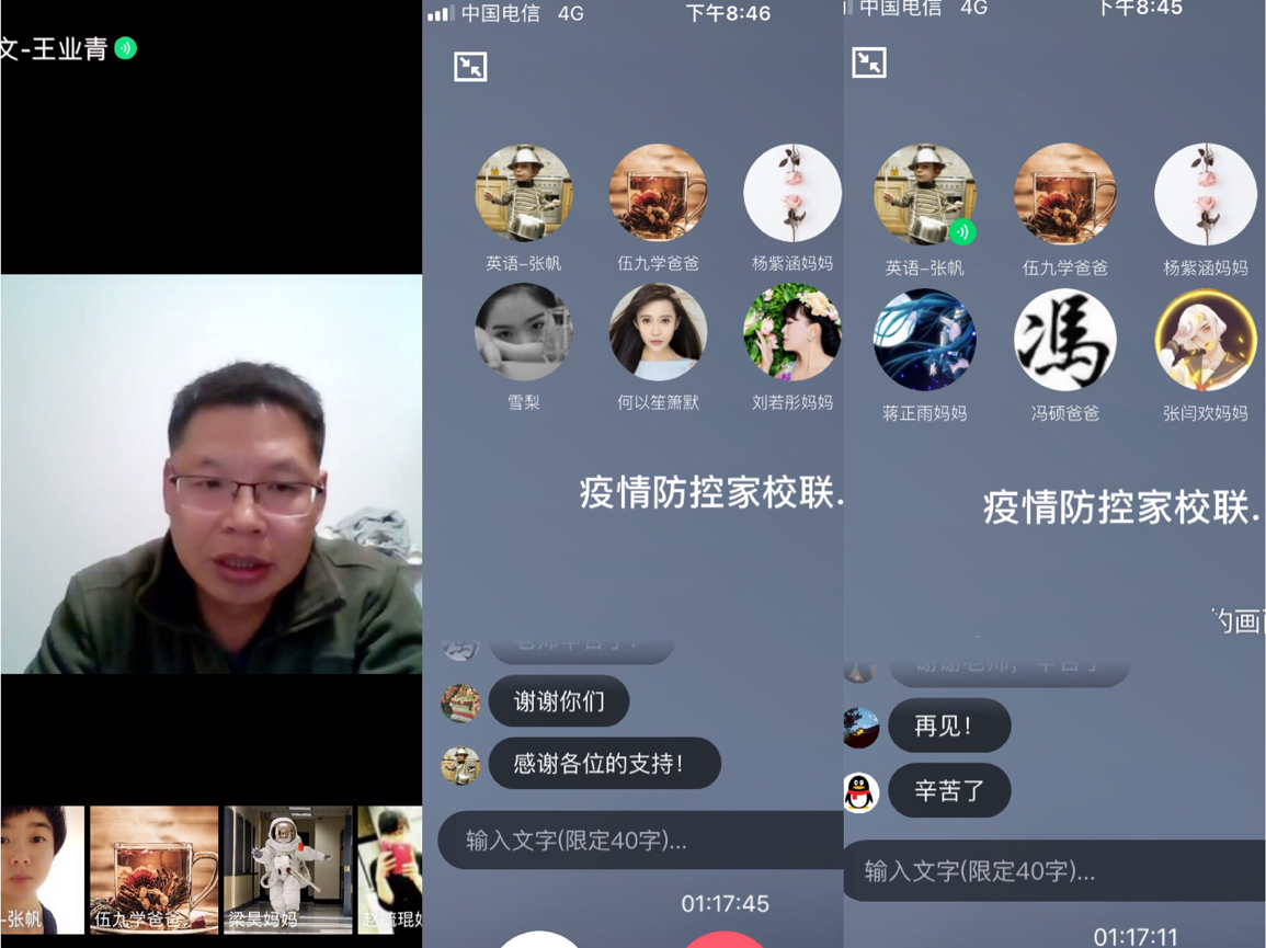 會議中,兩位老師與家長們進行了深入交流,了解學生線上學習、交換生學習、考研復試以及就業求職中遇到的困難,尤其針對學校復學工作計劃、復學之后學校的防控保障措施向家長進行了逐一解答。