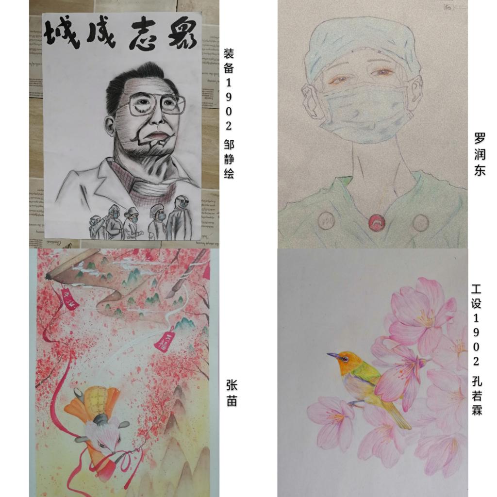 世上沒有從天而降的英雄,只有挺身而出的凡人。此次書畫作品中有最美逆行者們高大美麗的身影,有基層工作者們的默默奉獻,有千千萬萬人民大眾的團結友愛,有同學們對抗疫的昂揚斗志和祈愿。每一個落筆都是一聲祈禱,每一個畫面都是一顆熾熱的心!