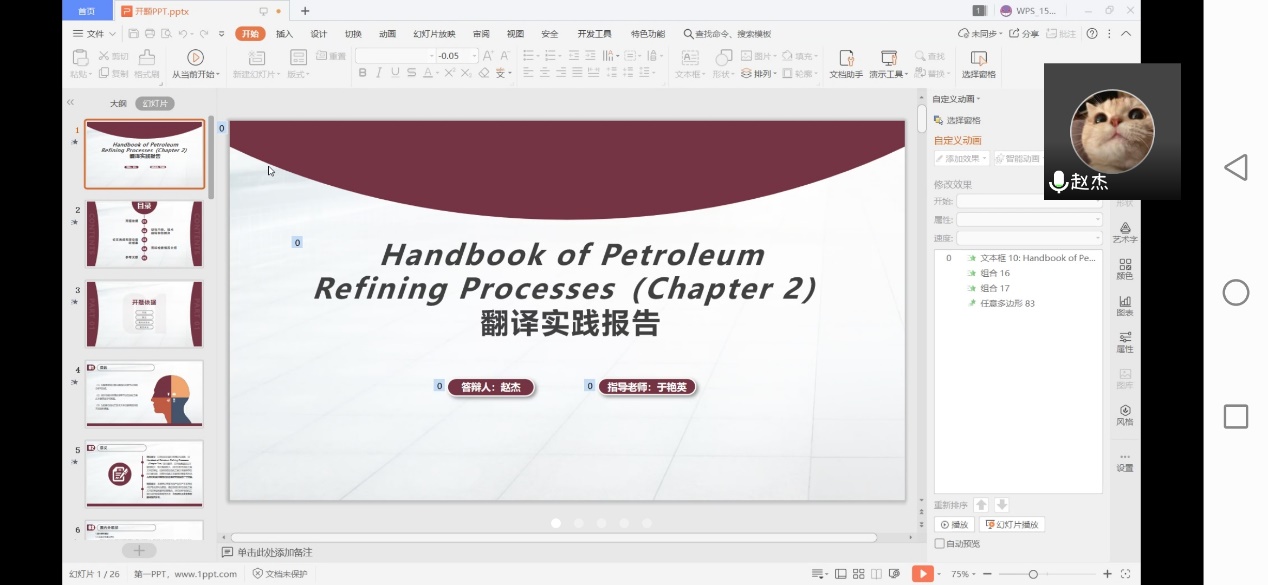 每位學生以PPT形式展示匯報開題內容并進行答辯。開題學生向答辯老師就選題意義、文獻綜述、主要內容、創新點及進度安排等進行了陳述,并回答老師的提問。答辯小組對各位研究生的開題報告分別進行了有針對性的現場點評,指出了存在的問題和修改意見,并要求同學們根據意見及建議認真地對選題及內容進行調整和修改。