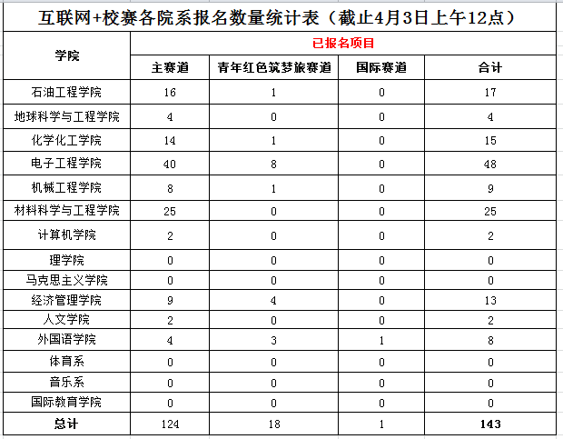 數據來源:2020年“粵嵌杯”西安石油大學“互聯網+”大學生創新創業大賽報名數據統計