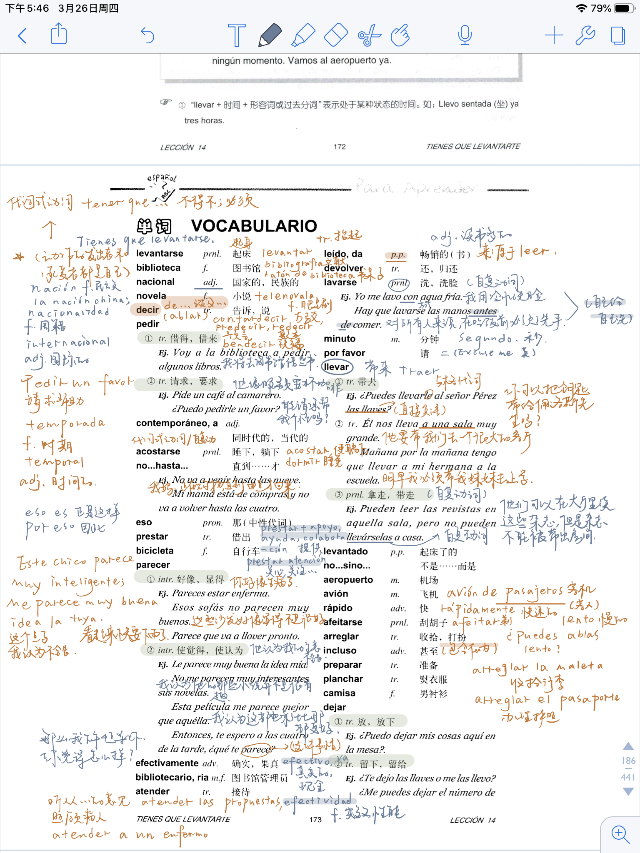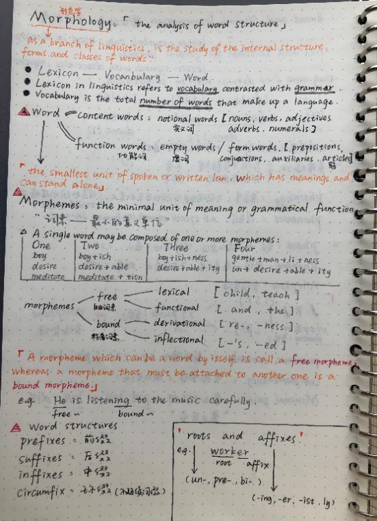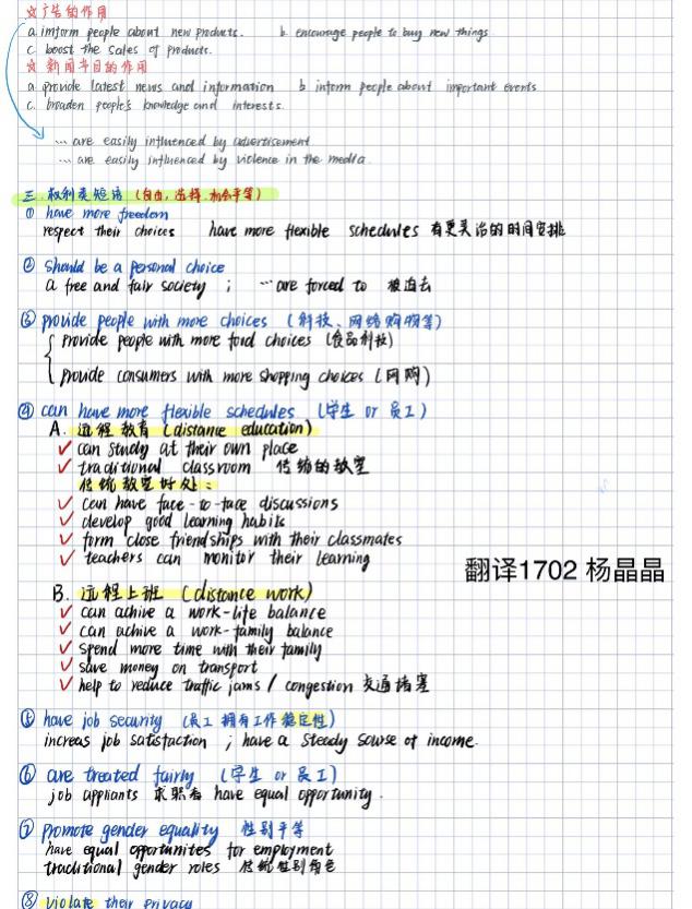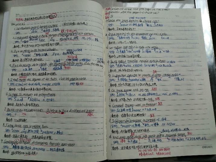 翻譯專業:同學們筆跡清晰,充分利用客戶端,進行無紙化學習,筆記也像繪畫一樣色彩斑斕,重點清晰。