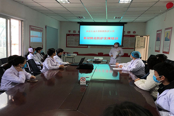 為做好新冠肺炎疫情防控工作,有效保障全校師生和醫護人員身體健康與安全,校醫院嚴格做好院內感染控制,提升醫務人員新冠肺炎專業防護技術,組織全院人員進行醫療機構內感染預防與控制技術專業培訓。3月11日-16日分三批人員進行醫護人員消毒隔離防護實操培訓。