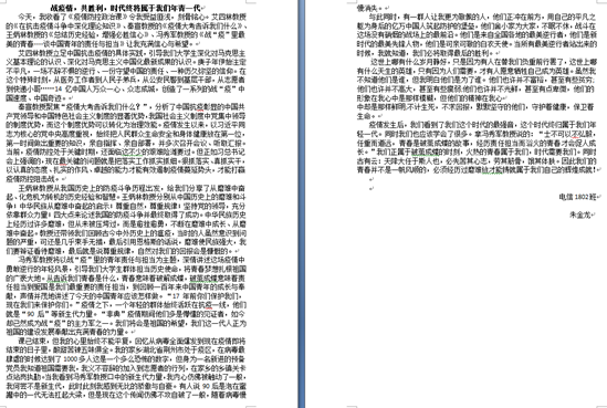 三是各年級學生和各學生黨支部黨員、預備黨員、積極分子紛紛通過撰寫學習心得、思想匯報的形式總結個人學習收獲,全院累計到普通學生、黨員、預備黨員和積極分子撰寫的心得體會、思想匯報1650余份。同學們紛紛表達了自己作為擔當民族復興大任的時代新人,堅信在黨中央領導下我們必將盡早戰勝此次疫情的信心和決心,以及通過此次抗疫防疫戰爭更見堅定“四個自信”的愛國之情。