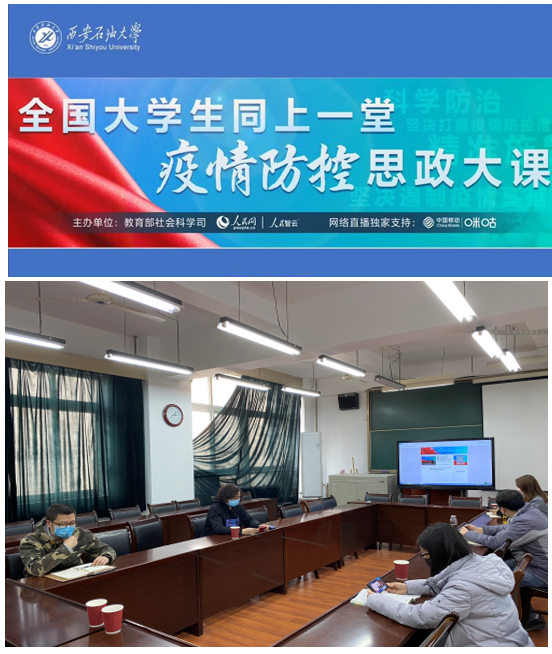在舉國上下萬眾一心、眾志成城做好新冠肺炎疫情防控工作的特殊時期,教育部社會科學司聯合人民網舉辦了一堂全國大學生同上的疫情防控思政大課。我校研究生工作部積極響應中央號召,為將高校思想政治理論課教學優勢轉化為支持防疫斗爭的強大力量,迅速部署工作,確保每一位研究生都能居家上好這堂特殊的“大課”。9日下午,經各年級研究生輔導員老師的提前布置,學生按要求通過多種途徑,全員參與、積極響應,順利觀看了課程直播。研究生工作部高榮芳部長、李甦副部長以及研工部思想教育科全體教師也在我校雁塔校區二號教學樓906會議室進行了收看學習。