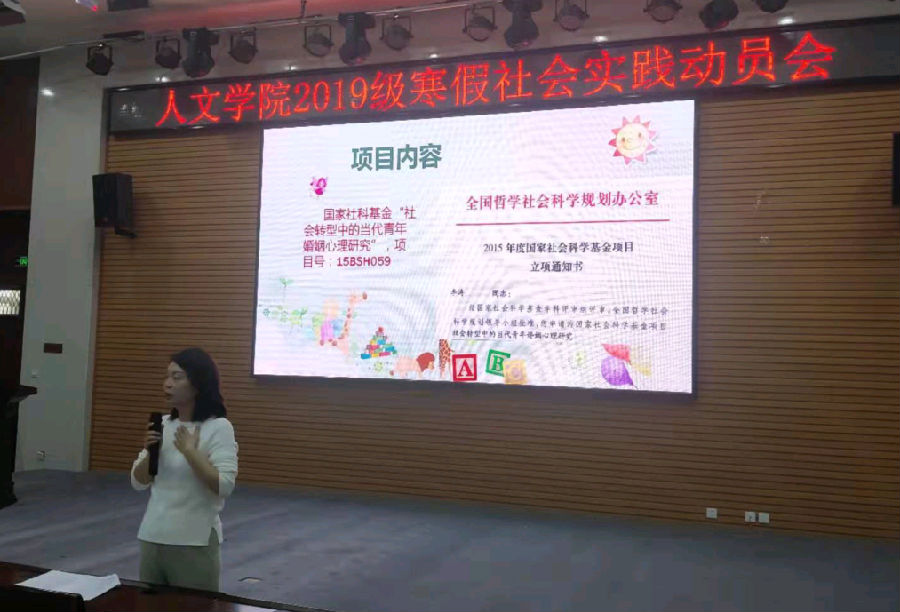 2020年1月7日,西安石油大學人文學院2020年寒假社會實踐動員會暨2018級、2019級年級大會在人文經管樓118會議室舉行,人文學院黨委副書記盛丹、2018級輔導員范嘉欣、2019級輔導員張澤正出席會議,2018級、2019級全體學生參會。
