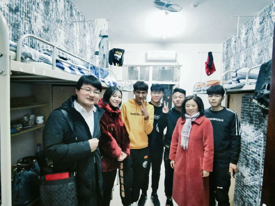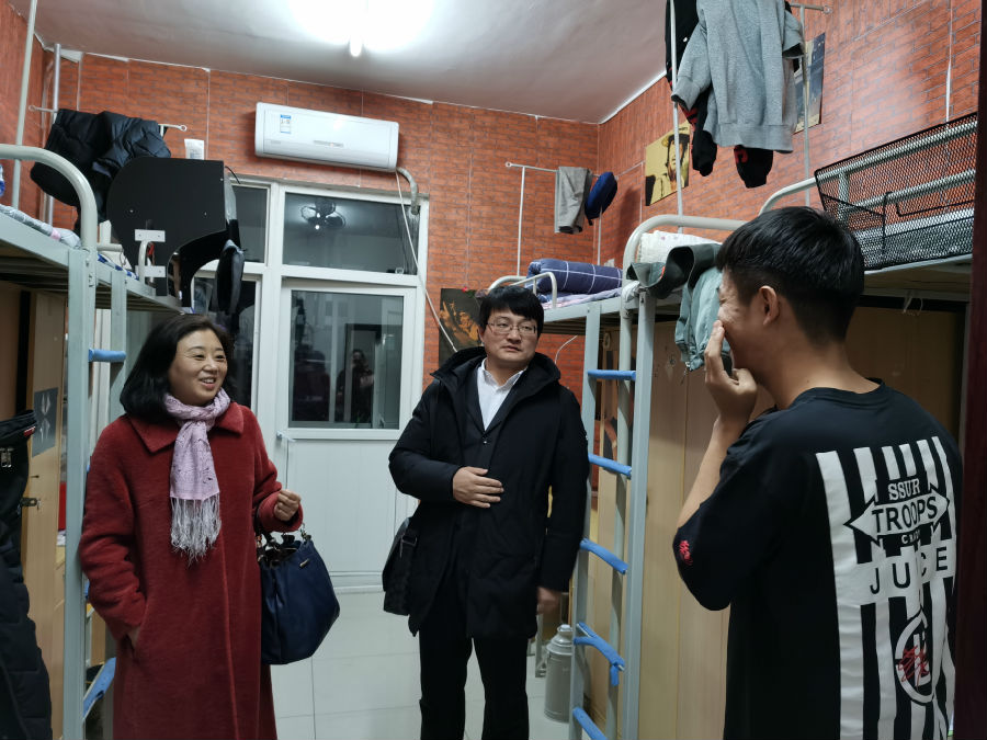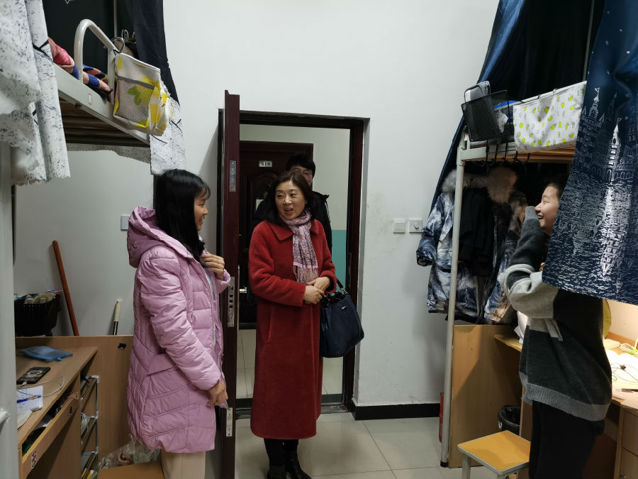 走訪中,畢軼慧老師及各年級輔導員再三囑咐同學們注意防寒保暖、樹立安全意識、積極備考、誠信應考,了解了同學們寒假回家的購票情況。在少數民族學生吐爾孫·頁合牙宿舍中,畢軼慧老師期許同學們珍惜大學時光,做好生涯規劃,積極樹立“民族團結一家親”的理念。受訪同學向老師們匯報了自身學習生活情況,對學院領導和老師們一年來的關心幫助表示感謝,并邀請老師們合影留念。