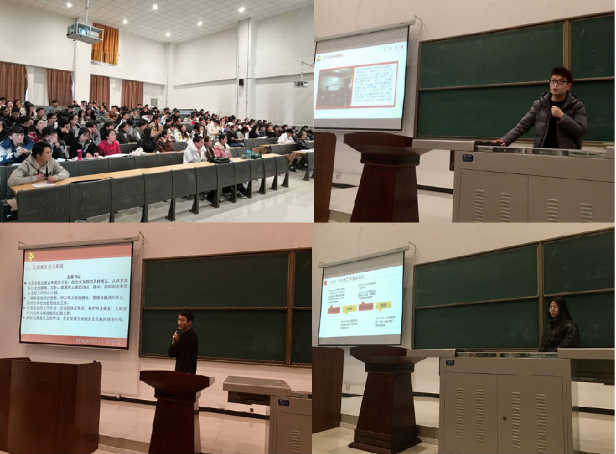 在學生黨支部書記述職評議會上,張成文等9名學生黨支部書記逐一向學院黨委及全體學生黨員報告了一年來的支部工作情況。與會黨委委員為各支部進行了評議打分。