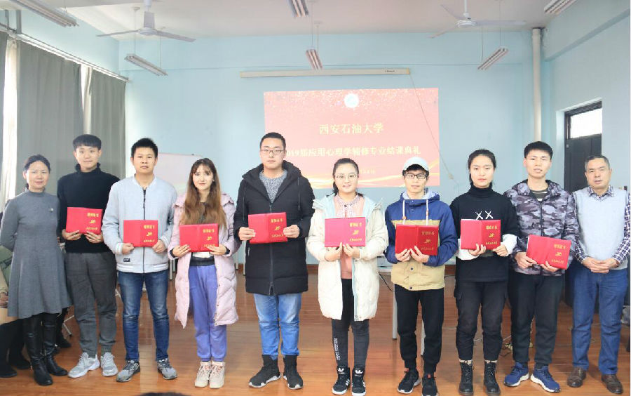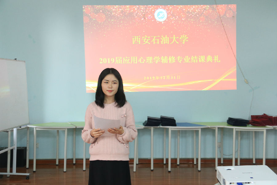 12月31日中午1點,我校2019屆應用心理學輔修專業結課典禮在鄠邑校區人文經管樓427舉行。教務處副處長易和平、學生心理成長指導中心全體教師、應用心理學輔修專業學生代表50余人參加。