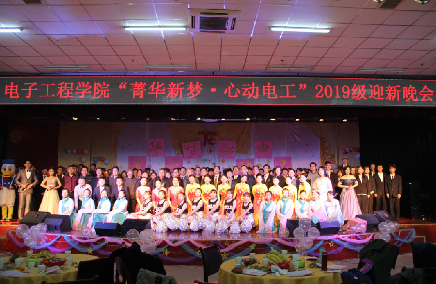 12月7日晚,由西安石油大學電子工程學院黨委、工會、團委、學生會聯合舉辦的“菁華新夢?心動電工” 2019級迎新晚會在鄠邑校區騰輝大學生活動中心舉行。校總會計師樊曉民、紀委副書記、監察處處長趙承勝、黨政辦副主任、鄠邑校區管理辦公室主任覃彪、黨委研究生工作部部長高榮芳、黨委教師工作部部長武曉朦、黨政辦公室副主任、鄠邑校區管理辦公室副主任黃建禮、圖書館副館長張偉、出席了本次活動。電子工程學院全體黨政領導,部分退休的老領導、老教授、各系、教研室、辦公室教師及兄弟院系的團學工作干部共計50余名教師及家屬親臨了晚會現場。電子工程2019級全體新生及部分高年級學生共計900余人,觀看了晚會。
