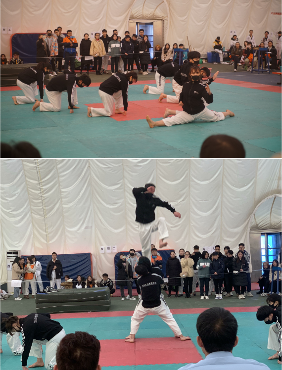 在為期一天的緊張比賽中,我校跆拳道協會表演團首先以跆舞“龍拳”獲得本屆高校聯賽跆舞項目第一名。在隨后的高級別甲組段位賽中,張越與劉婭以靈活搶點、貼身近戰的特點,分別取得該組冠軍和亞軍。