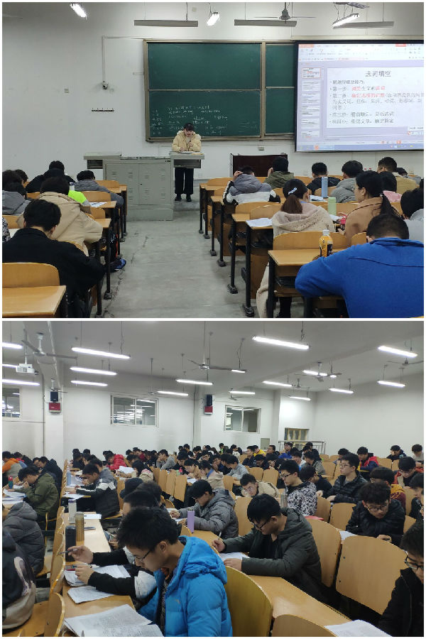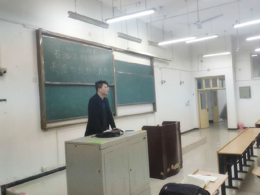 本次活動共分為前期動員、英語自習、四級模擬考試和英語講座四個部分:1、10月27日晚8點,2017級輔導員孫浩哲老師于鄠邑校區B123教室,對我院2017級未通過四級同學召開四級動員大會,從就業和考研兩個方面強調了英語四級的重要性,著重分析了目前國內外石油石化企業招聘形勢,以及相關石油高校研究生招生情況。其次,對本次英語四級促進月活動的英語自習、四級模擬考試和英語講座進行了安排部署;