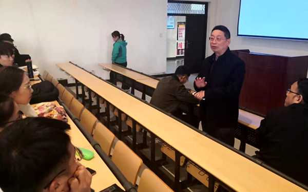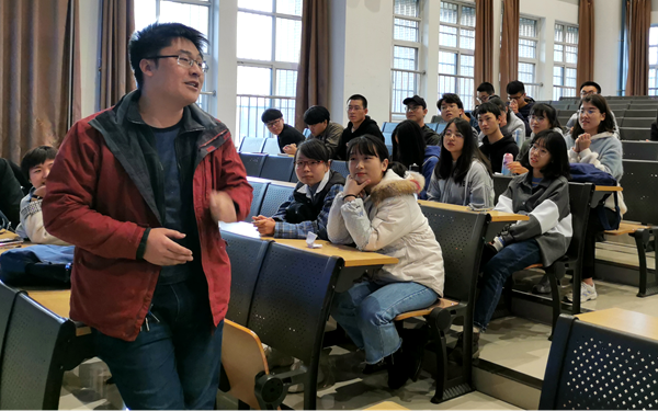 接著,系黨支部書記徐向前老師結合“不忘初心、牢記使命”主題教育,向同學們介紹了學校和我院主題教育的開展情況。他強調指出,教師的職責就是為學生傳道、授業、解惑,作為黨員教師,完全有責任有義務走在前列,充分發揮先鋒模范作用,既教書又育人。徐老師還就期中教學檢查中同學們的反饋意見,組織老師與同學們一起交流互動,答疑解惑,引導同學們正確認識和積極面對學習生活中面臨的困難。