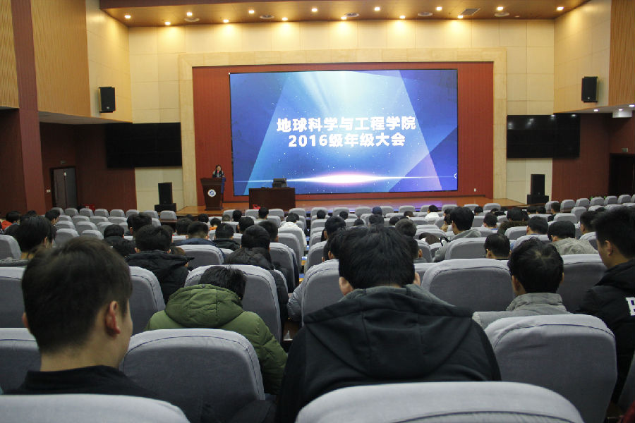 2019年12月3日中午12點,地球科學與工程學院在鄠邑校區弘石報告廳召開2016級年級大會暨安全誠信教育大會。會議由2016級輔導員張陽老師主持,地球科學與工程學院2016級全體學生參加。