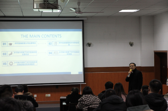 啟動儀式后,羅劍朝教授學術報告會順利舉行。經濟管理學院院長王君萍教授、副院長李俊亭副教授以及部分教師與研究生共100余人參加報告會。羅劍朝教授以《金融改革創新與鄉村振興》為題,就金融的定義與主要特征、金融發展現狀與存在問題、鄉村振興背景下金融改革的主要內容、金融創新發展、金融改革創新的難點與未來趨勢等內容進行了分析與介紹,并就課題申報中的選題標準、申請書的邏輯自洽性等問題與與會老師進行了深入探討。羅教授的報告深入淺出、內容豐富、信息量大。與會老師聆聽完報告后紛紛表示,深受啟發,收獲頗豐。