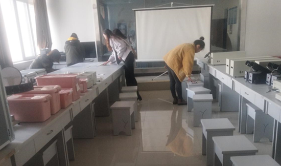 11月22日中午,管科系學生第一黨支部組織支部全體黨員開展志愿服務活動,對鄠邑校區經管人文樓三層專業實驗室進行了清掃。