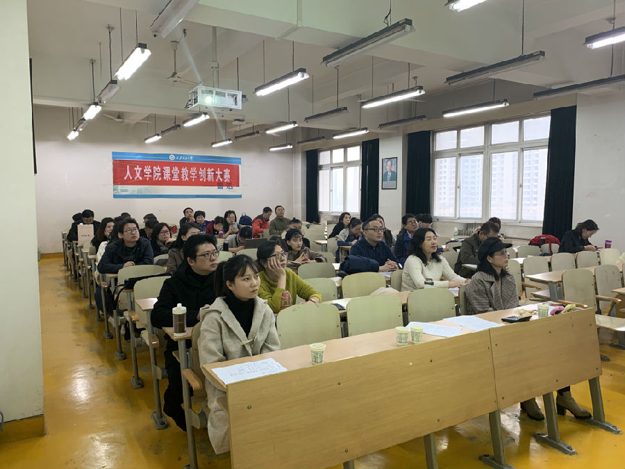 為了進一步貫徹落實教育部、陜西省教育廳有關文件精神,促進高校課堂教學改革與創新,進一步發揮課堂教學改革在創新教學理念、教學內容、教學方法、教學手段和教學評價等方面的導向作用,引導廣大教師有效利用現有教學資源,合理應用信息技術,積極投入課堂教學創新實踐,以賽促教,以賽促改,實現課堂教學由“以教為中心”向“以學為中心”的轉變,切實提高課堂教學質量,不斷提升人才培養水平。11月20日下午,人文學院在雁塔校區2號教學樓舉辦了第二屆課堂教學創新大賽暨2019年教師講課比賽。
