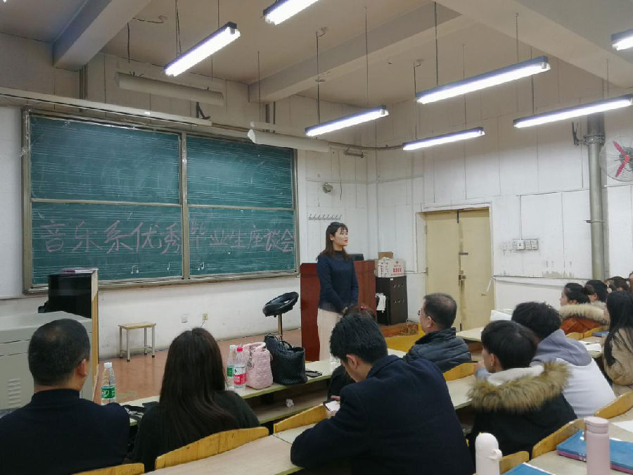 本次座談會邀請到音樂系2001級吳茁世、2002級韓嘉和梁曉鳳、03級瞿文婷四名優秀畢業生,他們在座談中依次發言,向我系在校生暢談母校對自己成長的培養和教育,講述了自己的本科期間的學習和生活的點點滴滴,告誡在學校期間要努力學習專業知識,合理安排學習時間,有著明確的學習目標。在畢業之后的就業、成長歷程中要根據需要和自身不足不斷充電進步。他們向在校生交流學習經驗,求職經驗,鼓勵大家努力上進,為大家明確學習方向,同時也為我系在校上了別開生面的一堂課。