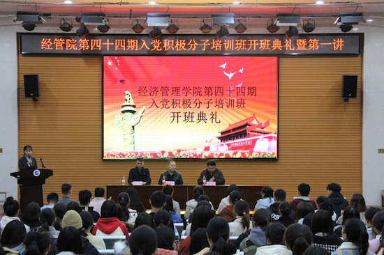 11月20日晚,經濟管理學院第四十四期入黨積極分子培訓班開班典禮在鄠邑校區經管人文樓118多功能廳舉行。材料科學與工程學院黨委書記齊仲鋒、經濟管理學院學生管理辦公室主任劉冰出席,學院組織員、黨工辦學生干部、各年級入黨積極分子200余人參加。