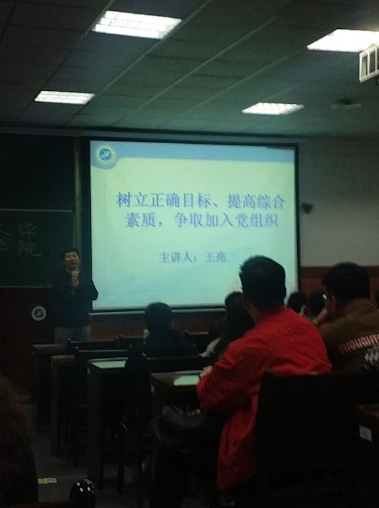 與此同時,雁塔校區入黨積極分子培訓班第一講在本部東階201室舉辦,由校黨委組織部副部長王亮以“樹立正確目標,提高綜合素質,爭取加入黨組織”為題講授。王部長提出“未進黨的門,先做黨的人”,要求入黨積極分子要樹立正確的人生目標,培養明確的行為傾向,提高綜合素質,努力做到思想入黨。他強調,要樹立正確的人生目標,需要不斷學習,提升素養,加強自信,樂觀拼搏。不斷學習,提升素養是肩負責任、人生發展和適應時代的需要。只有學習有深度,認識才能有高度;要及時思考目標定位,明確如何學會做人、做事、學習;要明確自己的局限,明確目標,征服自己才是最大的勝利。他希望同學們加強學習,增強品質,不斷提升黨性修養,深入實踐,提高素質,充分發揮模范作用,勇于創新。希望同學們懂得責任和奉獻,為把祖國建設得更加美好而奮斗。