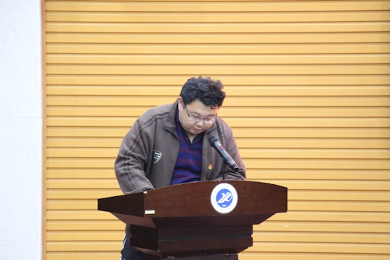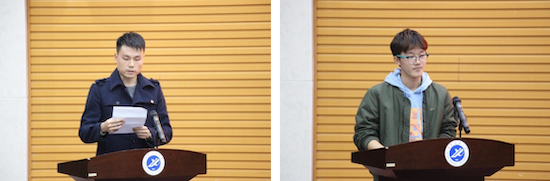 組織員武威老師宣讀了黨課考核標準,并介紹了課程安排。入黨積極分子代表ACA1901涂佳帥同學作了表態發言。