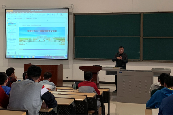 董會老師首先給學生闡述了材料學科對國家發展的重要作用,他以典型的應用讓學生對學科的認識更加深刻。同時介紹了西安石油大學焊接技術與工程專業的歷史沿革、師資力量、辦學理念及各位教師的研究方向。就業方面,基于各個高校統計數據給學生闡述了國內外單位招聘時注重學生的素質,提醒學生大學四年應該進行哪幾方面的素質訓練。考研方面,給學生提出了一些建議,必須認清自己、準確定位、制定目標、勇于攀登。