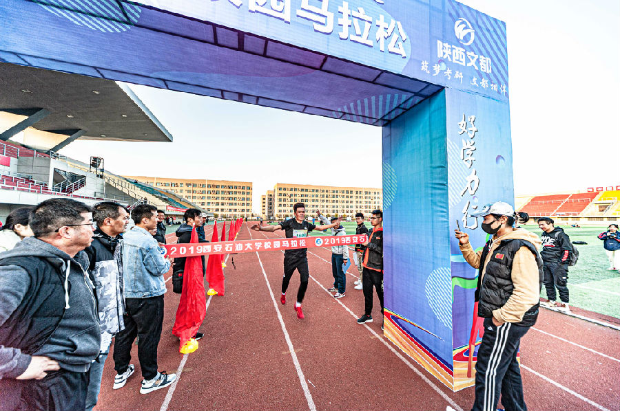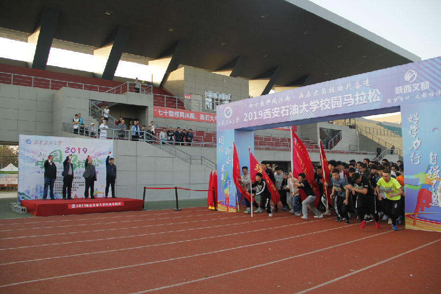 “七十載櫛風沐雨、西石大與祖國共奮進”,由體育系承辦的2019西安石油大學首屆校園馬拉松于11月15日下午16:30在鄠邑校區東田徑場盛大舉行。校體育運動委員會主任、西安石油大學副校長陳軍斌、鄠邑校區管理辦公室主任覃彪、校醫院院長崔廣志、保衛(部)處、武裝部副處長張永華、體育系黨總支書記倪振文等領導進行了聯合發令。