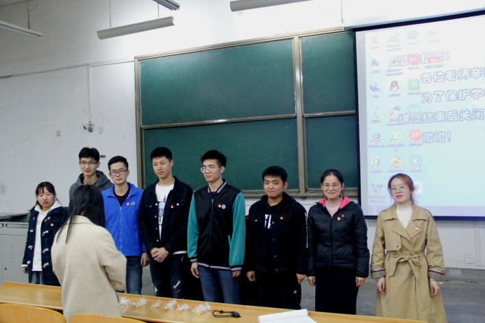 最后,張陽老師為每位黨員頒發了一枚代表著黨員身份的“為人民服務”徽章,她希望大家能夠以此來約束自己,在以后的學習生活中積極發揮先鋒模范作用。