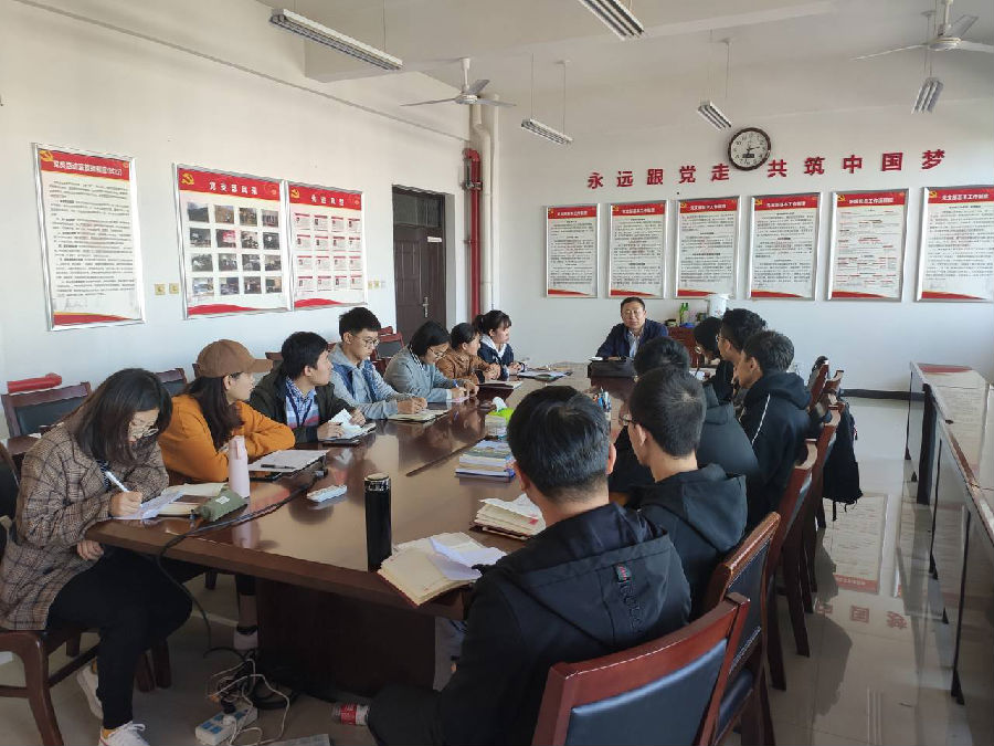 2019年11月13日星期三下午14:00,地球科學與工程學院地工專業學生第一黨支部組織在地科樓507進行了“聚焦黨的十九屆四中全會”學習交流會,支部書記劉佳婷主持會議,聯系本支部的黨員領導干部陳濤老師出席會議,地工專業學生第一黨支部全體黨員參加。