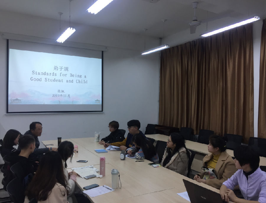 張帆老師用中英文雙語講了《加強中國傳統文化學習,堅定文化自信---植根傳統,創新表達》主題黨課,經過認真籌劃、精心準備,外國語學院首次用中英雙語進行了實踐,豐富了黨課的方式,創新了黨課的內容。本次黨課內容重點講述了加強中華優秀傳統文化教育的重大意義、核心思想理念、基本功能、思想精華和時代價值,如何加強中華優秀傳統文化學習。