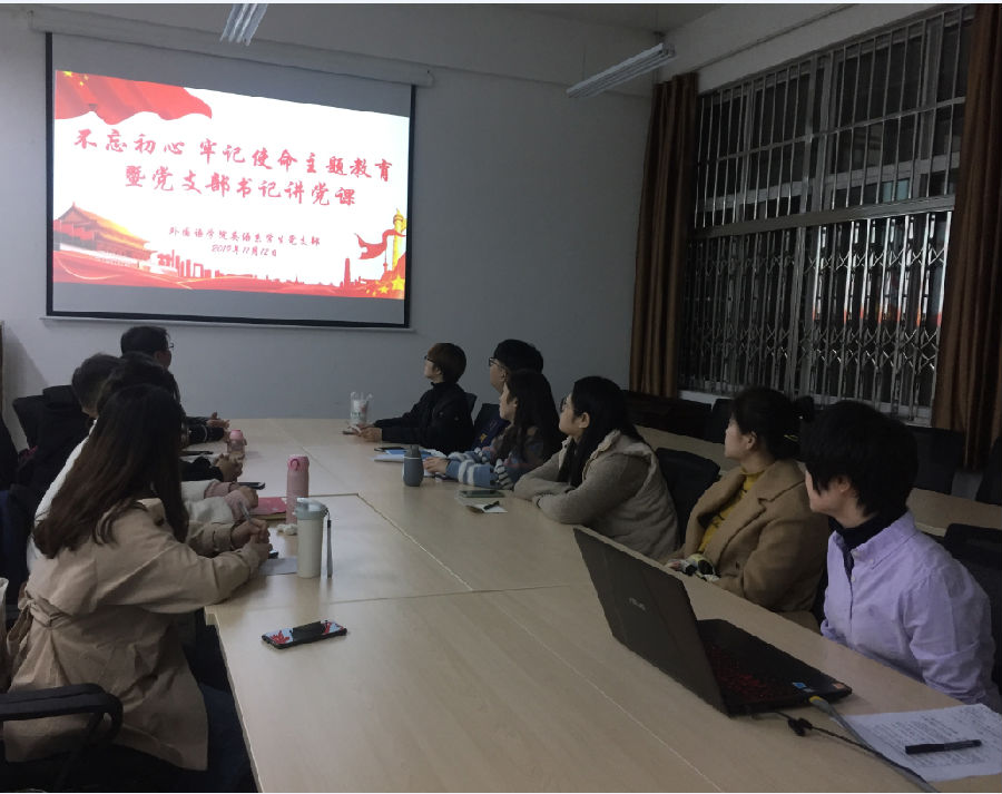 根據《關于在“不忘初心、牢記使命”主題教育中加強愛國主義教育、弘揚愛國主義精神的通知》(西石大教組發〔2019〕10號)的文件要求,外國語學院英語系學生黨支部于11月12日晚在人文經管樓314會議室召開主題教育學習會暨黨支部書記講黨課活動。學院黨委副書記王業青、英語系系主任鐘澤波、英語系學生黨支部書記張帆以及英語系學生黨支部全體黨員參加。